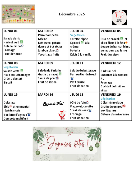 Nous vous invitons à réserver vos repas une semaine à l’avance (le jeudi pour la semaine suivante de préférence) à l'adresse mail suivante :