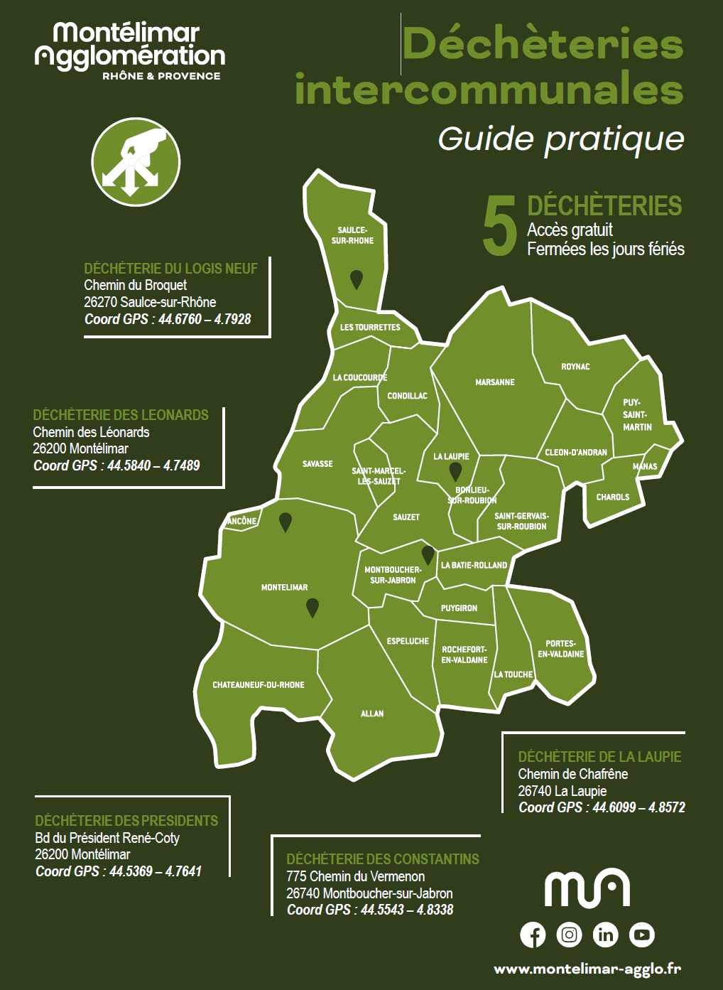 - La Laupie : la déchèterie de LA LAUPIE, quartier Roussas (la plus proche).
